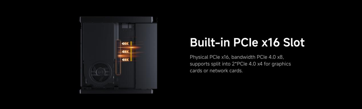 MS-A2 est doté d'une carte mère extractible, permettant aux utilisateurs d'installer ou de remplacer facilement du matériel en retirant simplement la carte mère. De plus, le MS-A2 prend en charge un emplacement PCIE 4.0 x8, qui peut fonctionner en mode non divisé ou être divisé en deux emplacements PCI Express 4.0 x4, offrant ainsi des capacités d'extension plus puissantes que le MS-A1. Les joueurs peuvent installer une carte graphique discrète à profil bas pour améliorer les performances graphiques et profiter d'une expérience de jeu plus fluide, tandis que les professionnels du réseau peuvent étendre les interfaces réseau haut débit pour répondre aux besoins réseau des entreprises.
