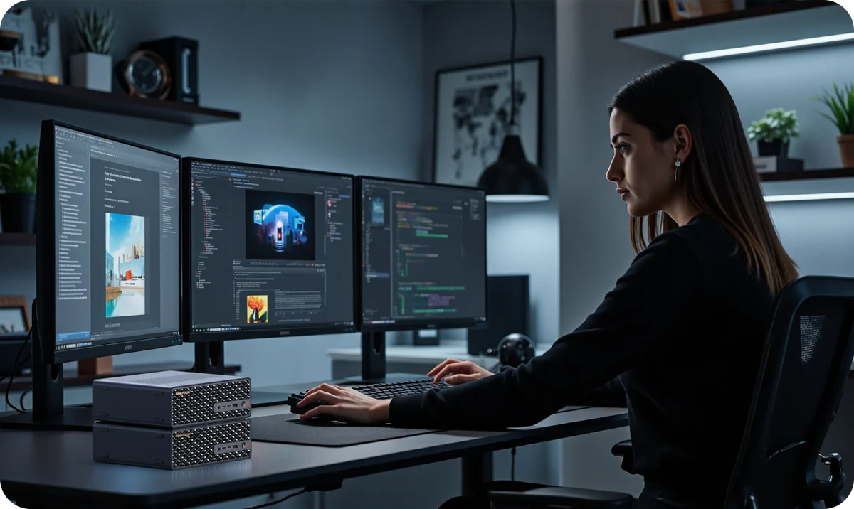 - Professionnels de la création : Idéal pour le montage vidéo, le rendu 3D, l'art IA et la production audio.