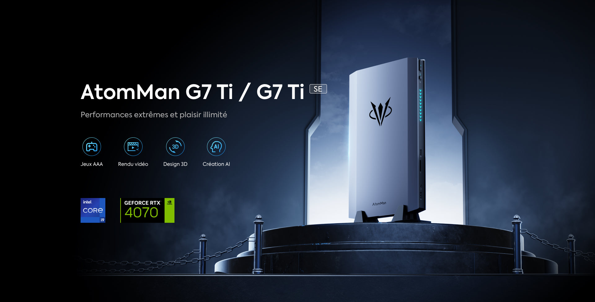 Le Mini PC G7 Ti est conçu comme la station de travail ultime pour les jeux AAA, le rendu vidéo, la conception 3D et la création Al. Grâce à ses capacités de haute performance, le G7 Ti offre des performances et une efficacité inégalées, ce qui en fait le meilleur choix pour les professionnels et les passionnés.