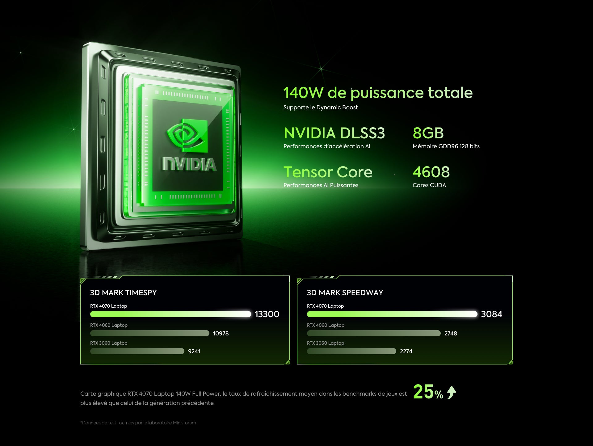 Le système de refroidissement par ondes froides de deuxième génération, qui utilise la technologie brevetée de Minisforum, permet d'obtenir des performances complètes jusqu'à