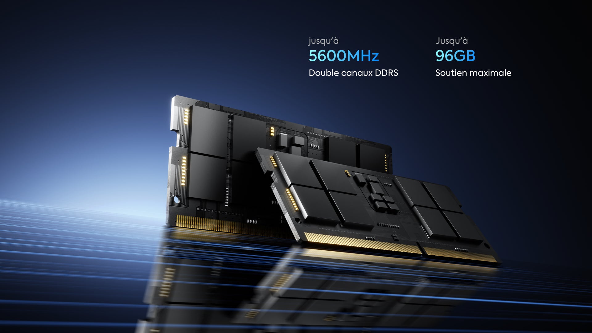 DDR5 Dual channels (SODlMM Slots, Jusqu'à 5600 MT/s, Max 96GB)