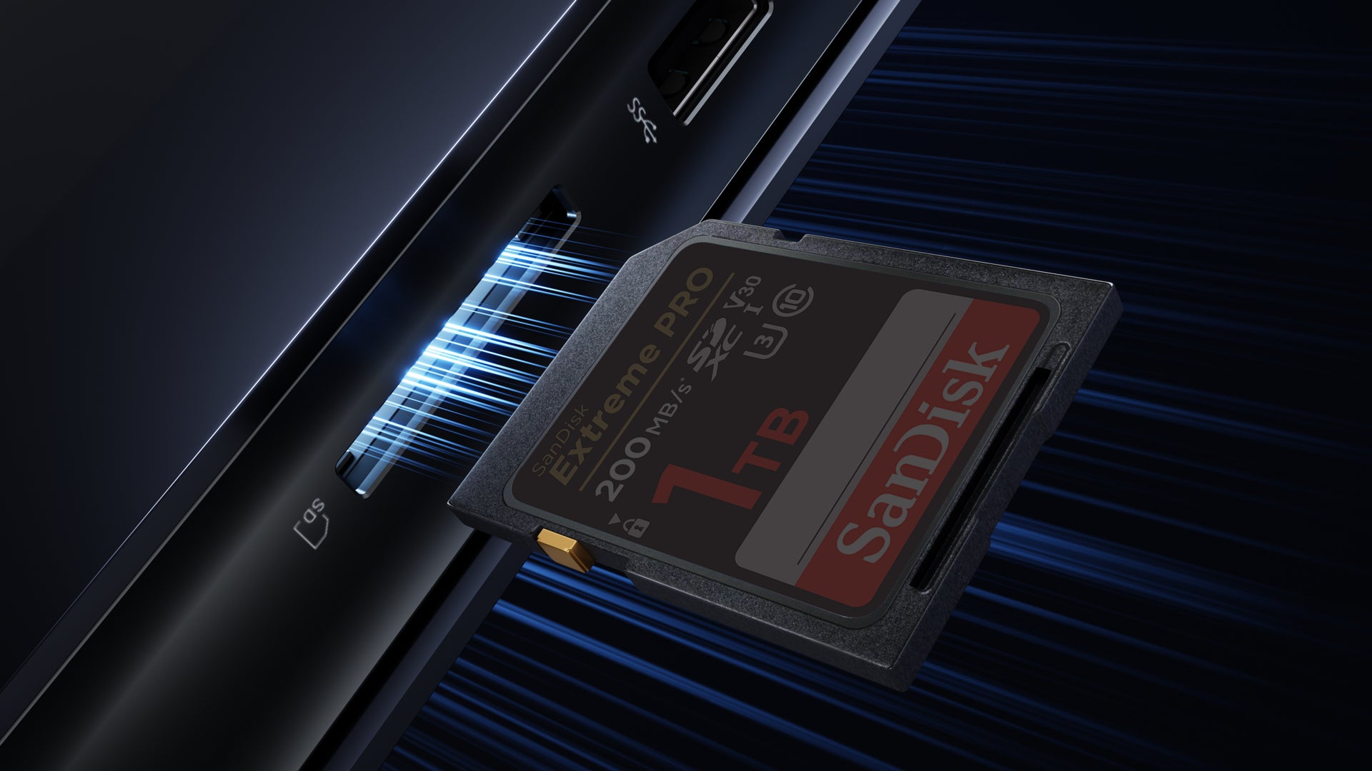 Ne laissez pas votre créativité attendre. Notre emplacement pour carte SD intégré vous permet de transférer vos dernières images de caméra ou de drone en un éclair, afin que vous puissiez commencer à donner vie à vos idées immédiatement.