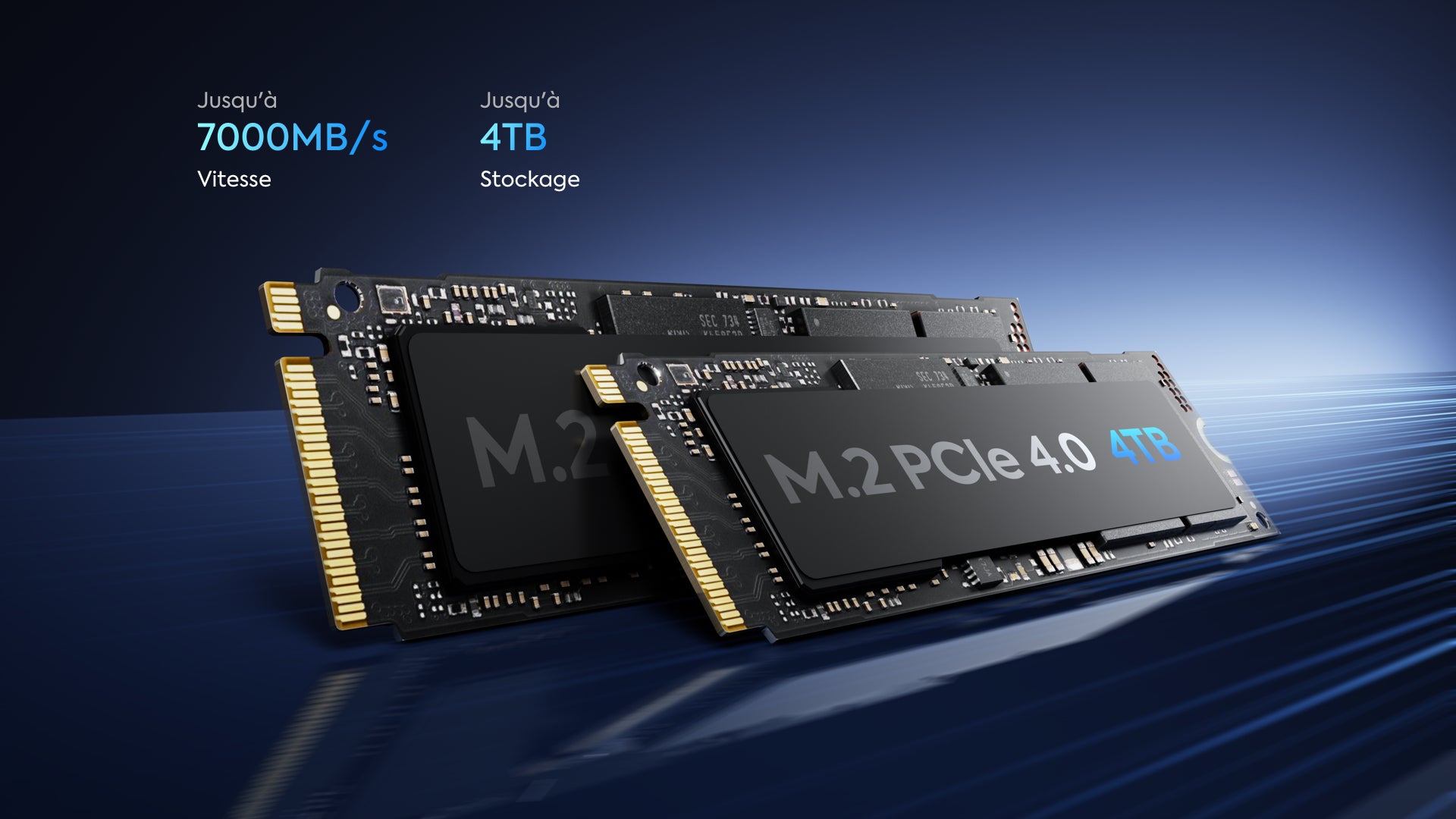 Gérez facilement même les projets les plus volumineux à l'aide d'un SSD PCle Gen4 configuré en RAlD 0. Avec un débit brut allant jusqu'à 7 000 Mo/s et une prise en charge allant jusqu'à 4 TB, les fichiers volumineux et les jeux volumineux