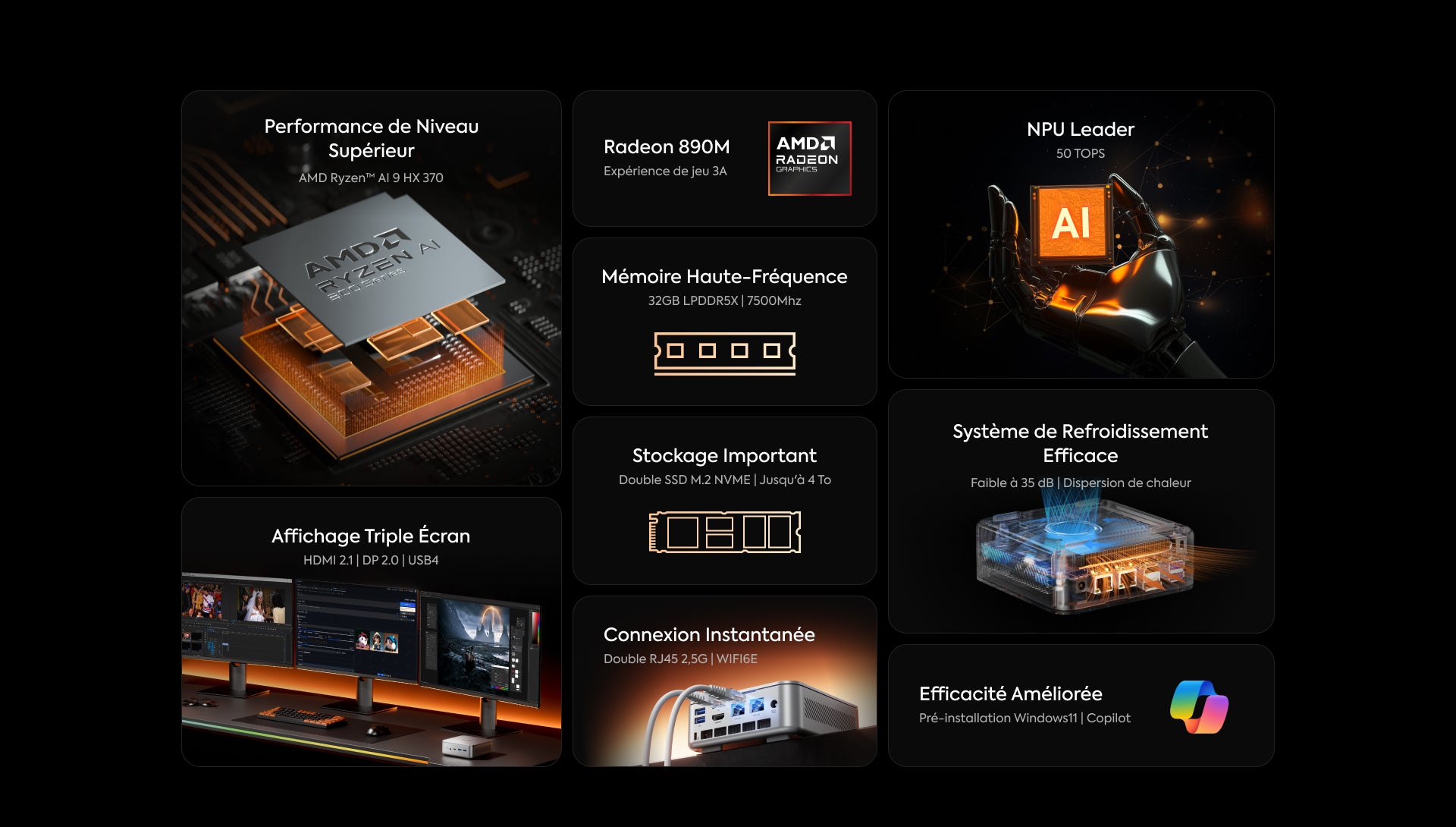 - NPU 50 Tops|Système de refroidissement bas à 35 dB