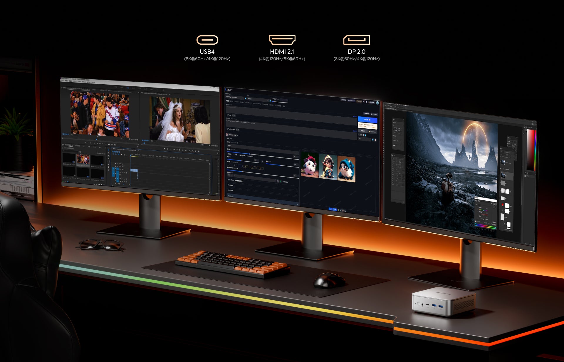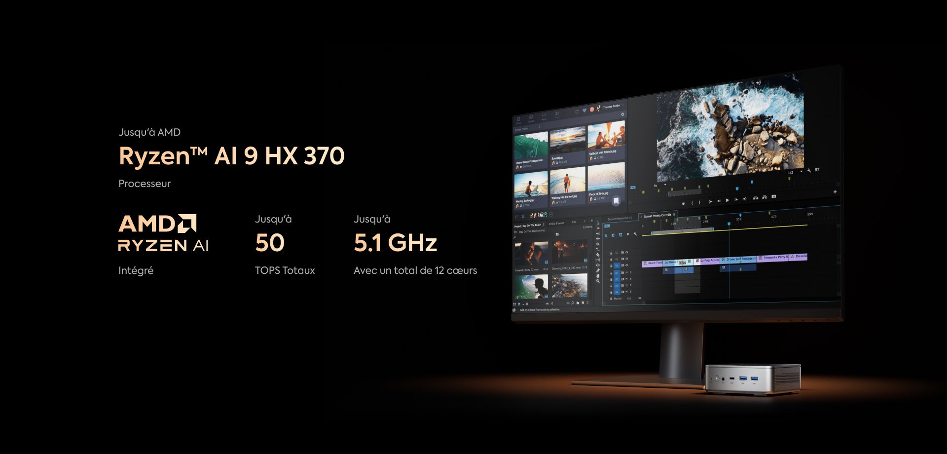 Avec 12 cores et 24 threads, ce Mini PC offre de puissantes performances pour les jeux et les applications créatives, ainsi que 60% de puissance NPU en plus pour un encodage audio et vidéo plus rapide, ainsi que des fonctions Al intégrées qui améliorent votre flux de travail et vos tâches quotidiennes comme jamais auparavant.