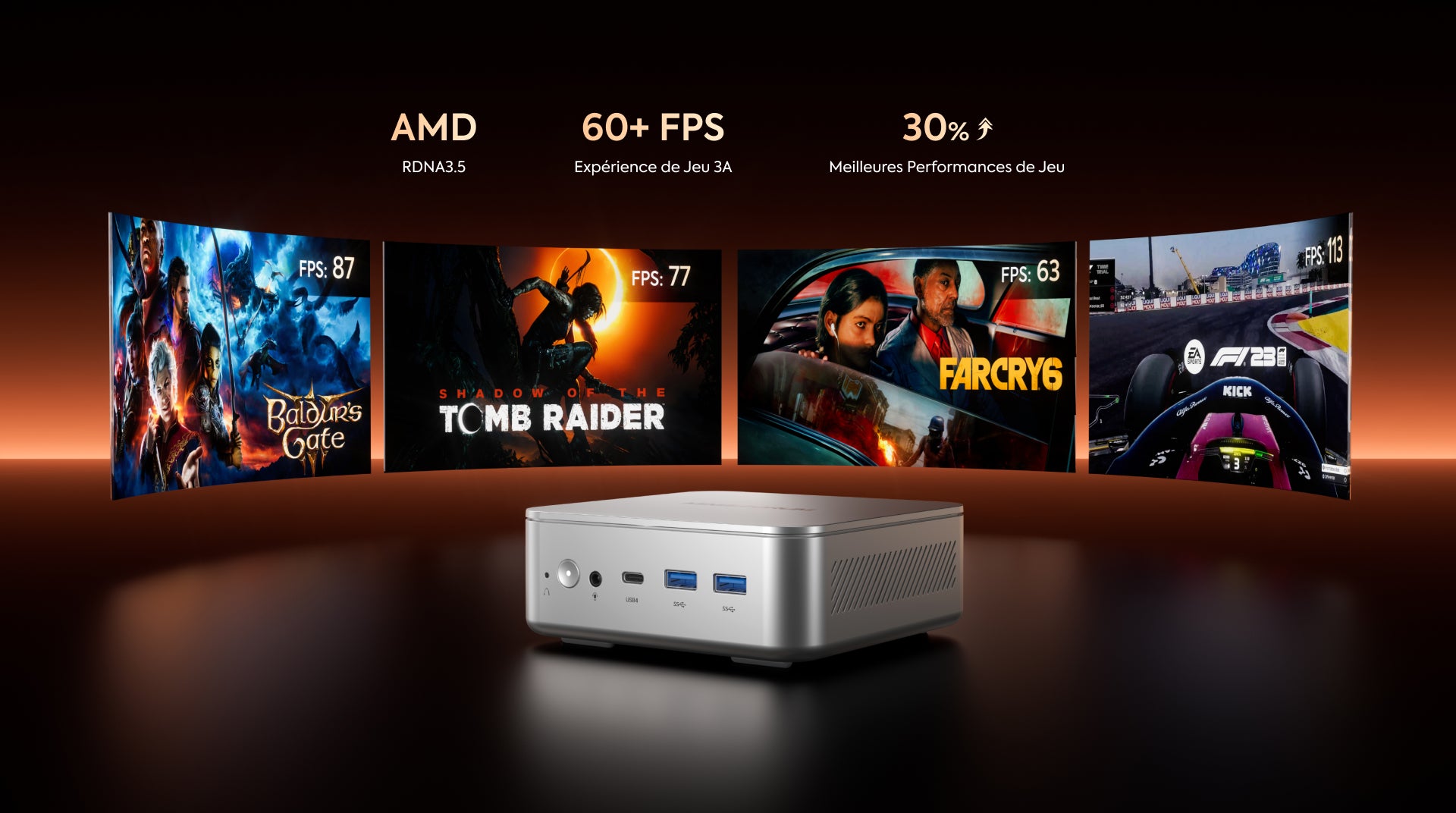 Le Mini PC EliteMini Al370, équipé de la carte graphique intégrée AMD Radeon™ 890M, offre une expérience de jeu 3A avec 60+ FPS et 30%,