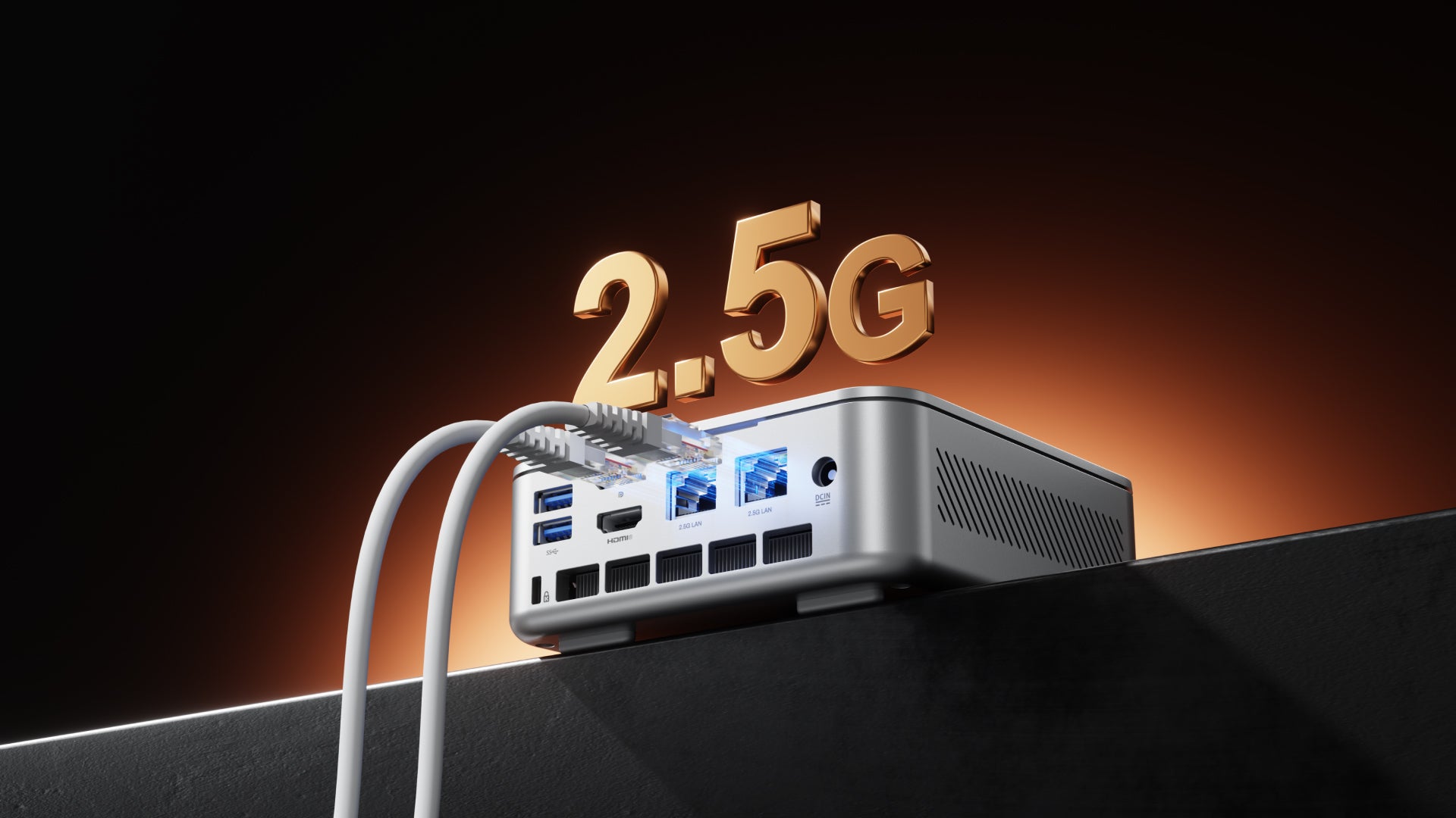 EliteMini Al370 est équipé d'un double port réseau câblé 2.5G avec agrégation de liens, garantissant une vitesse et une bande passante maximales pour les utilisateurs les plus performants.