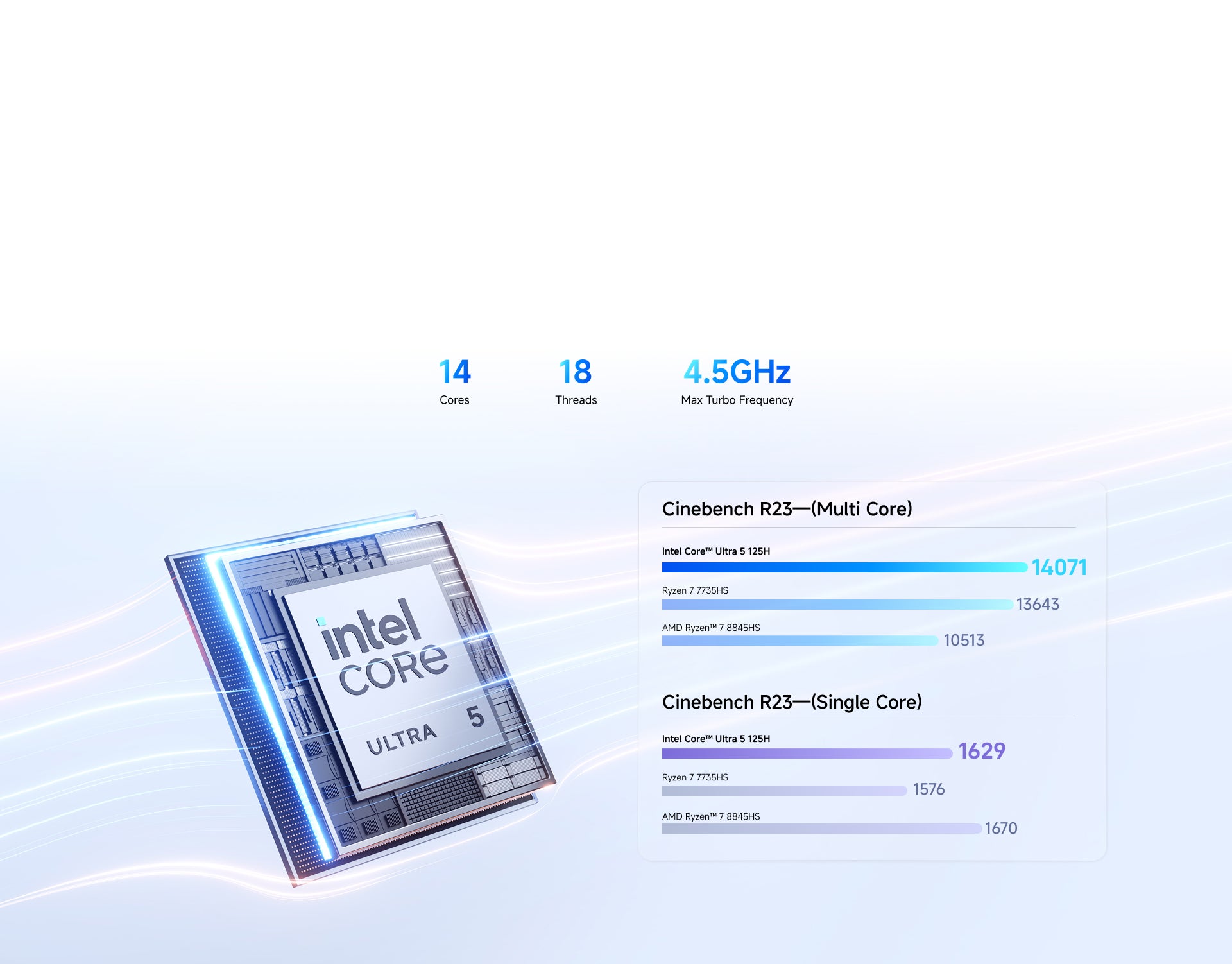 - Intel® Core™ Ultra 5 Processor 125H,14C/18T