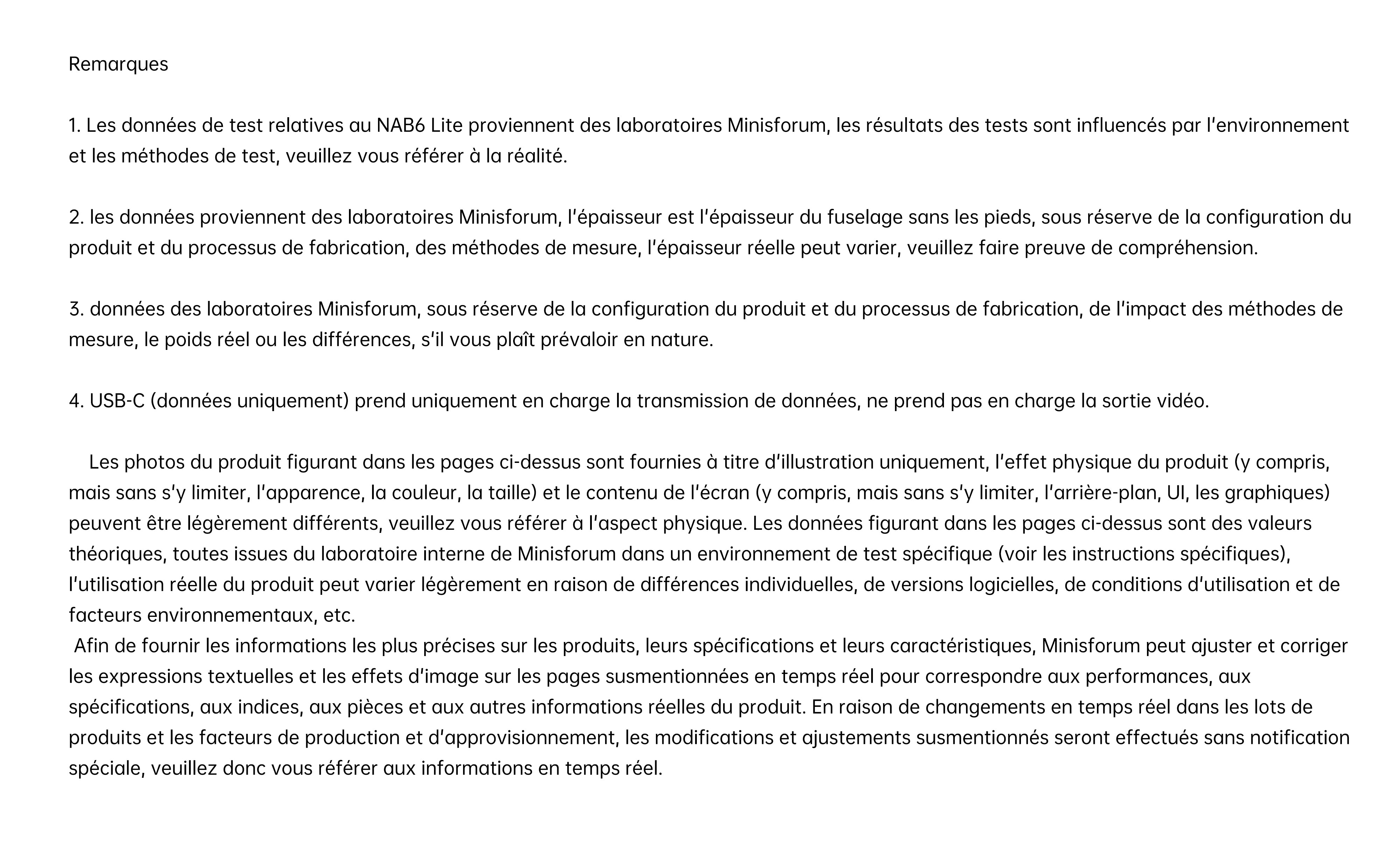 Les marques de matériel peuvent varier d'un lot à l'autre. Soyez assuré qu'ils répondent tous aux normes du Minisforum et qu'ils sont tous couverts par la garantie.