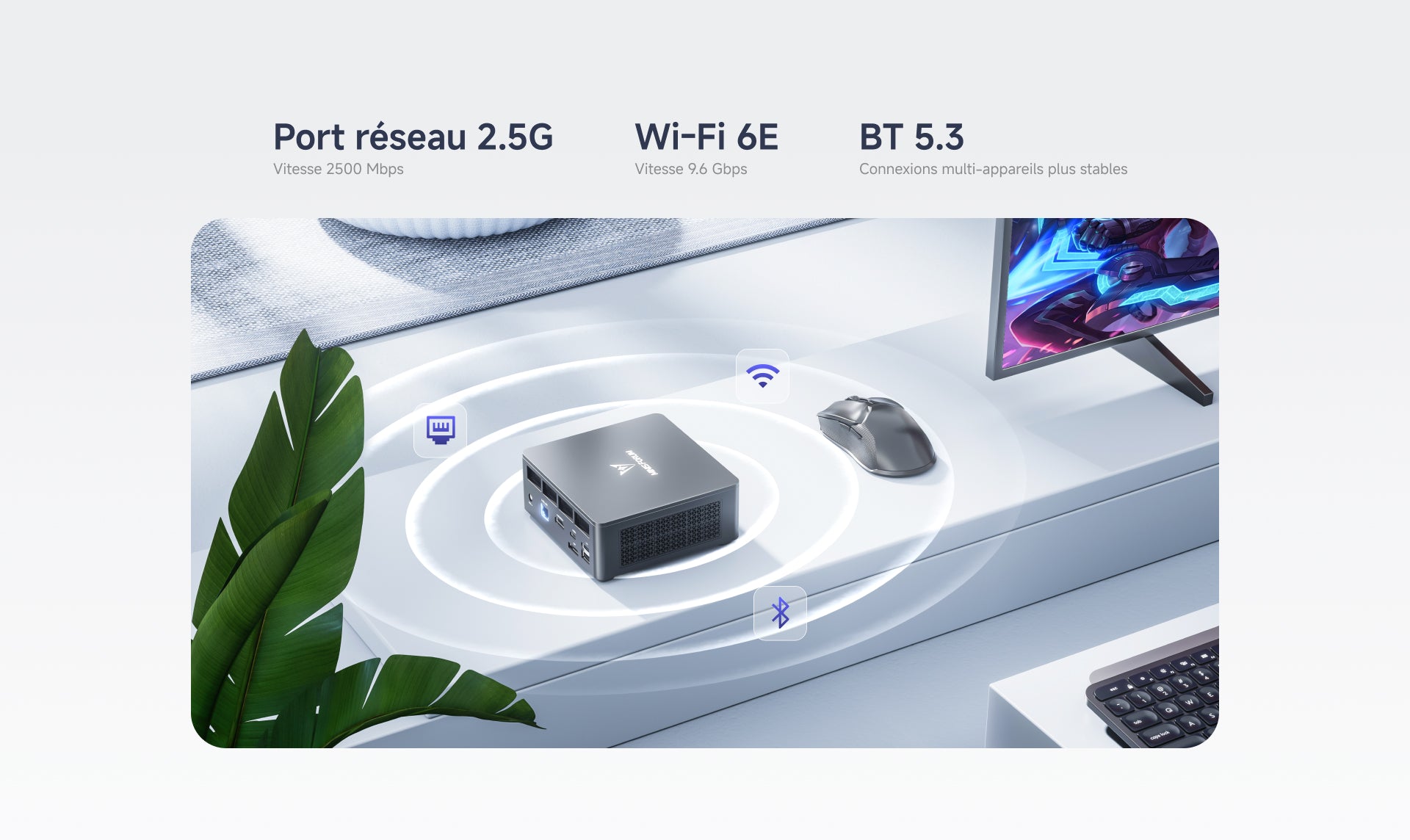 UM690L Slim est équipé d'un port USB4 pleine puissance avec une vitesse de transfert allant jusqu'à 40 Gbit/s, vous permettant de gérer facilement des fichiers volumineux, des projets complexes et des applications à forte demande, améliorant considérablement l'efficacité du travail.
