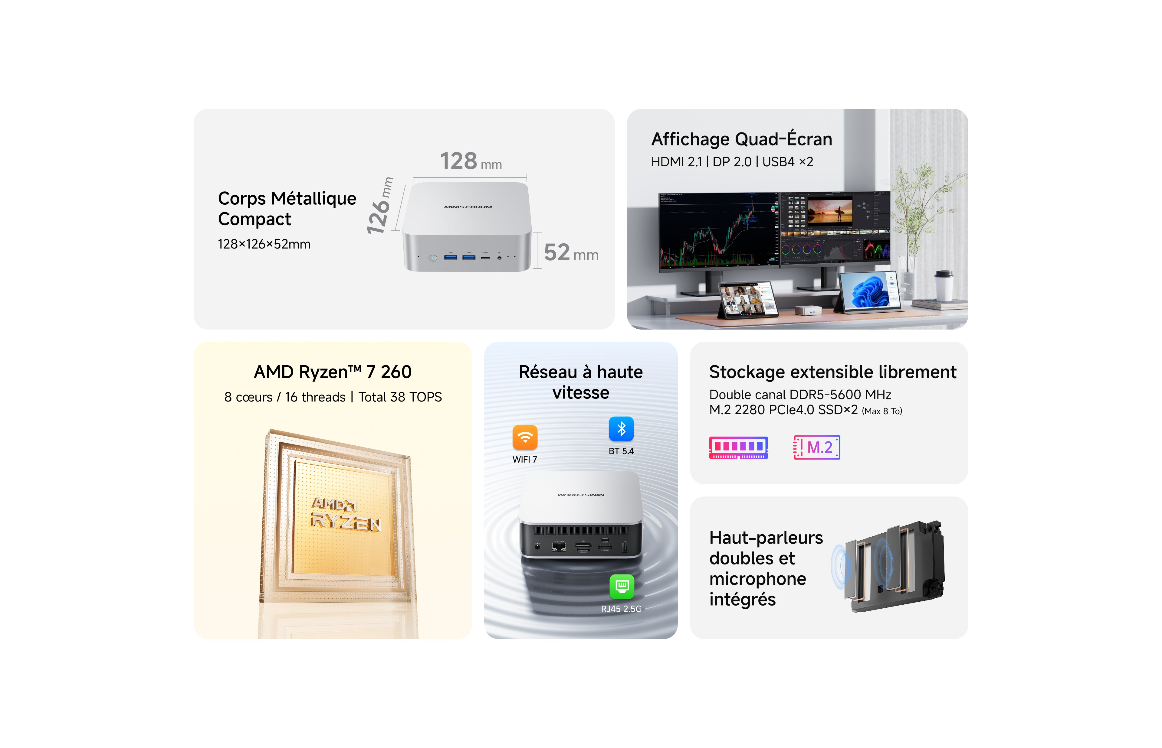 Le processeur AMD Ryzen 7 260 avec un TDP allant jusqu'à 65 W vous offre un avantage encore plus grand dans les scénarios multitâches, vous permettant d'exécuter simultanément plusieurs programmes volumineux en toute fluidité. Qu'il s'agisse de logiciels bureautiques, de plusieurs pages dans un navigateur ou d'outils créatifs professionnels, ils répondent tous efficacement.