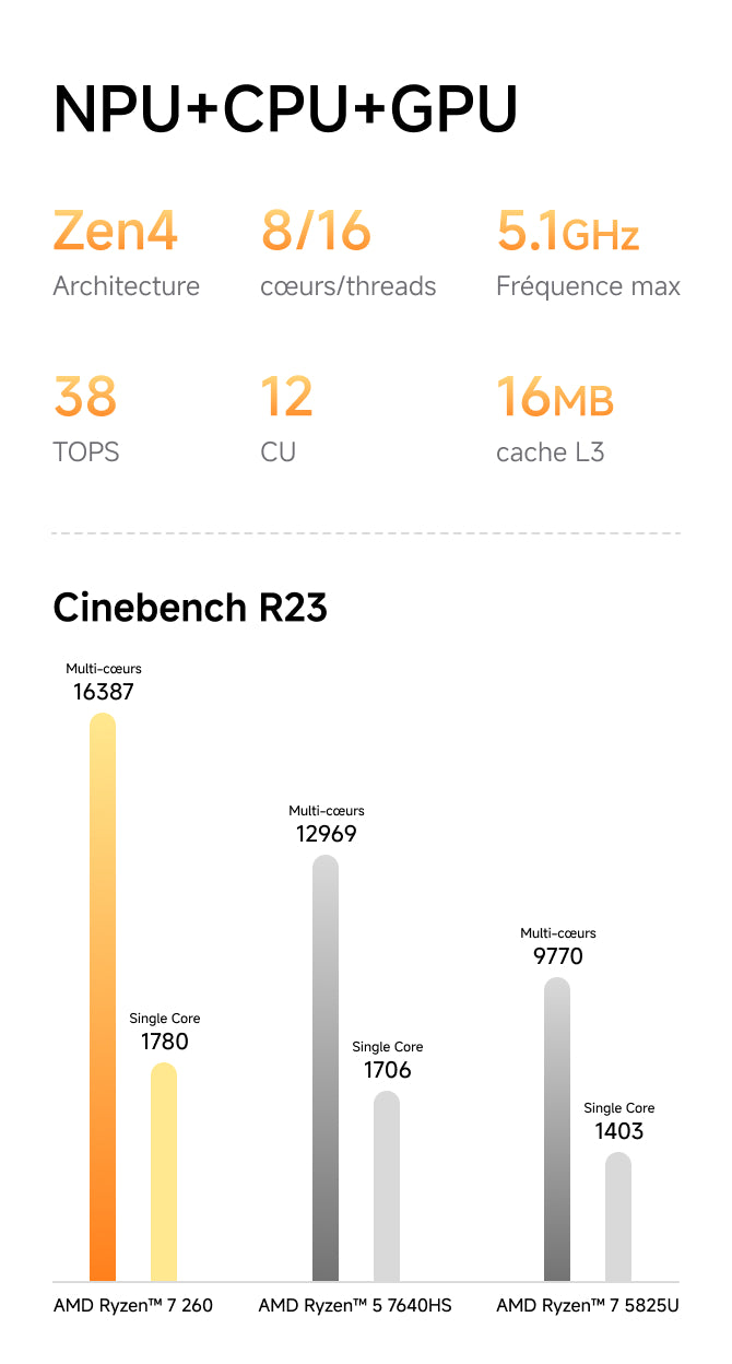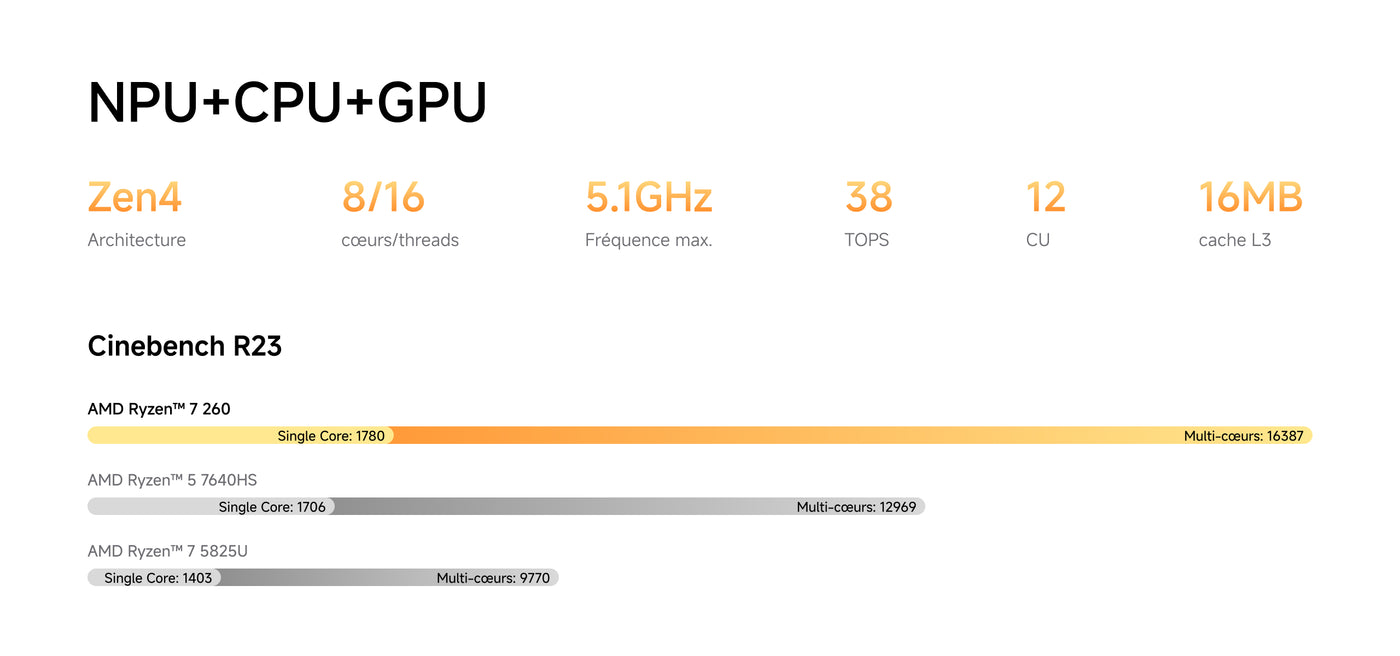 AI X1 est équipé de CPU AMD Ryzen™ 7 260 et AMD AI Ryzen™ 9 365.