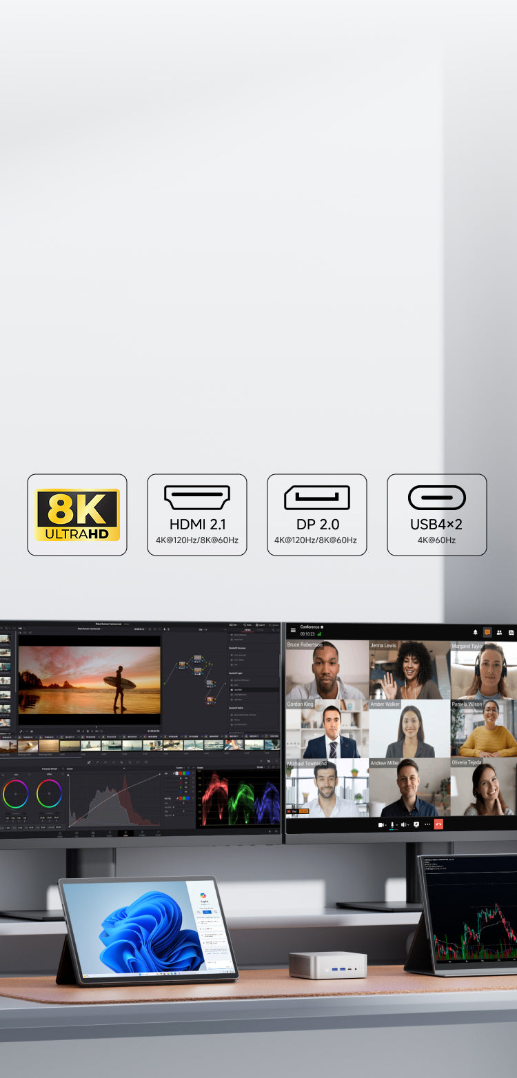 Avec des vitesses de transfert de données allant jusqu'à 40 Gbps, ces ports permettent de transférer de grands volumes de données en un temps record, augmentant considérablement l'efficacité du travail pour les utilisateurs qui ont souvent besoin de transférer des fichiers volumineux. En connectant une carte graphique externe haute performance via USB4, les capacités de traitement graphique peuvent être considérablement améliorées, prenant en charge des résolutions plus élevées et des affichages multi-écrans.