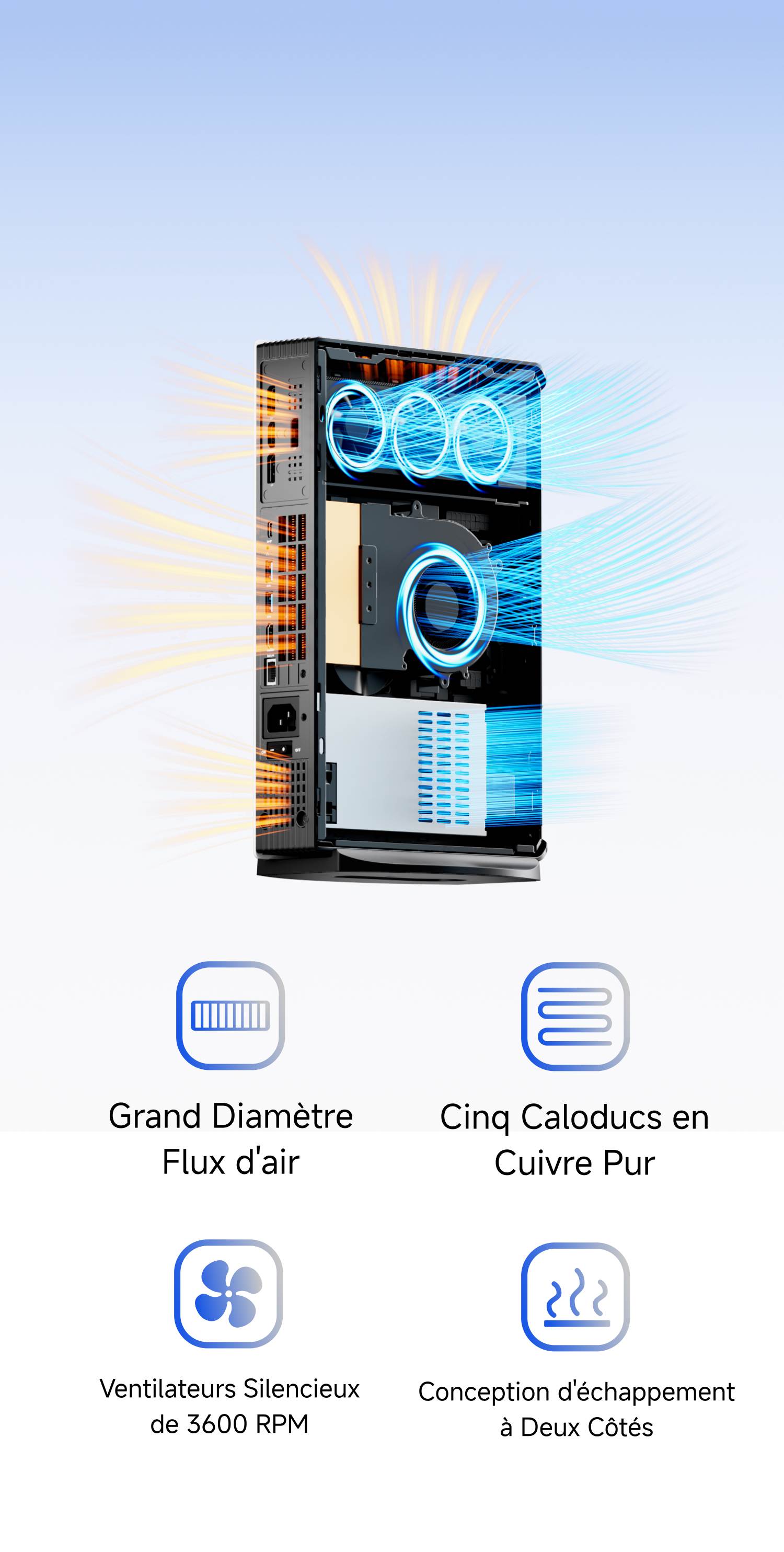 Une alimentation interne de 350 W fournit une puissance suffisante, assurant une base stable pour des performances de jeu optimales.
