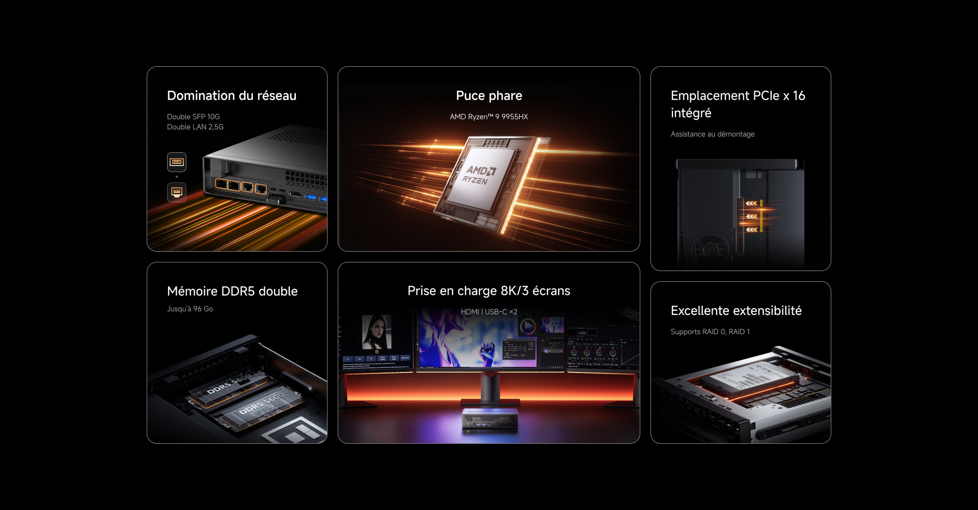 - RAID 0: atteint des vitesses de transfert allant jusqu'à 14,000 Mo/s