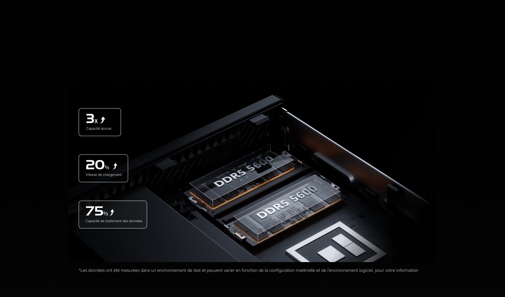 Sa bande passante de 89,6 Go/s (contre 51,2 Go/s pour la DDR4-3200 double canal) représente une augmentation de 75 % du débit de données, améliorant ainsi l'efficacité multitâche.