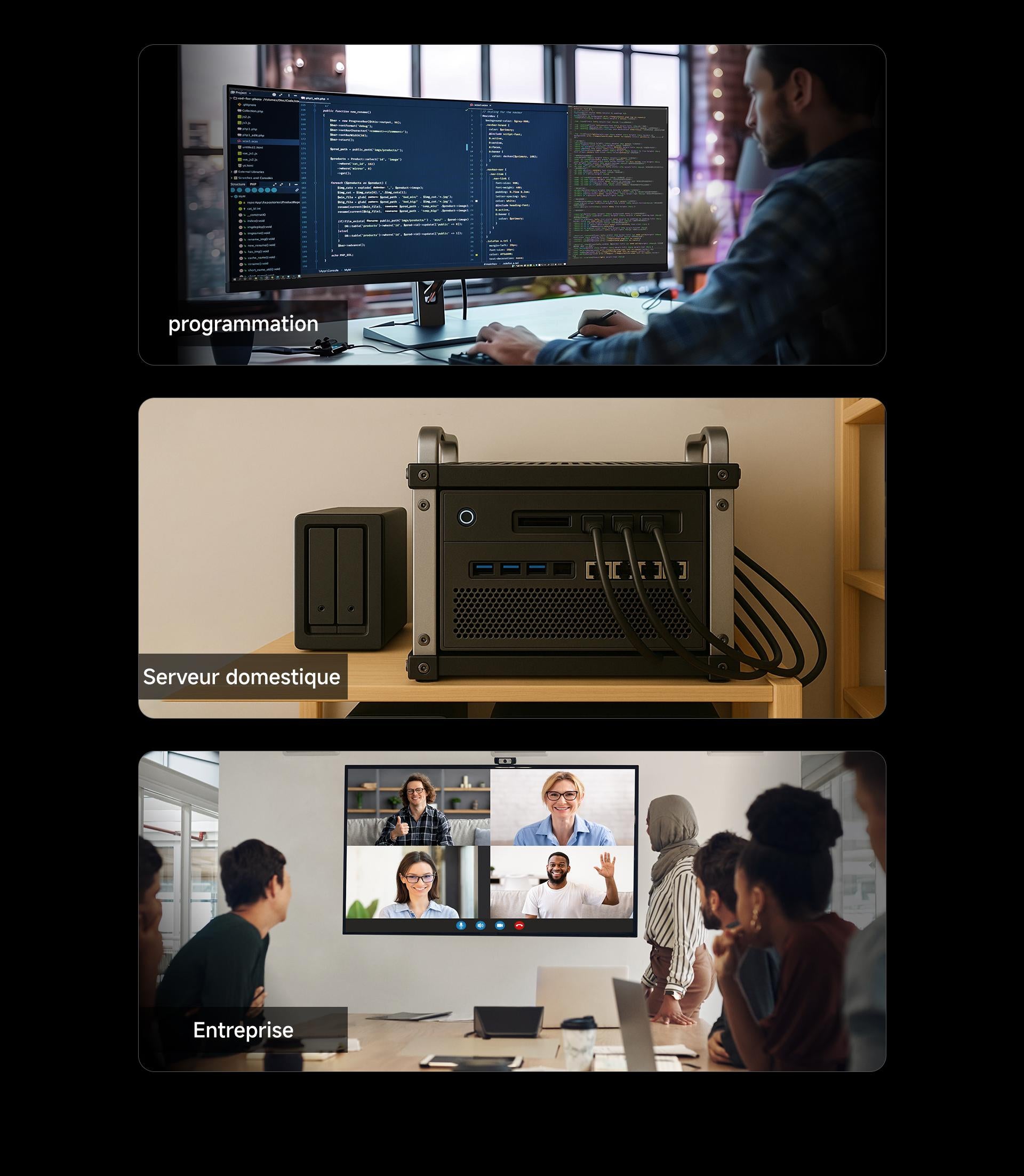 Les 3 emplacements SSD M.2 PCIe 4.0 NVMe prennent en charge les SSD grand public et permettent jusqu'à 12 To de stockage pour répondre aux besoins des professionnels de la création et du cinéma.