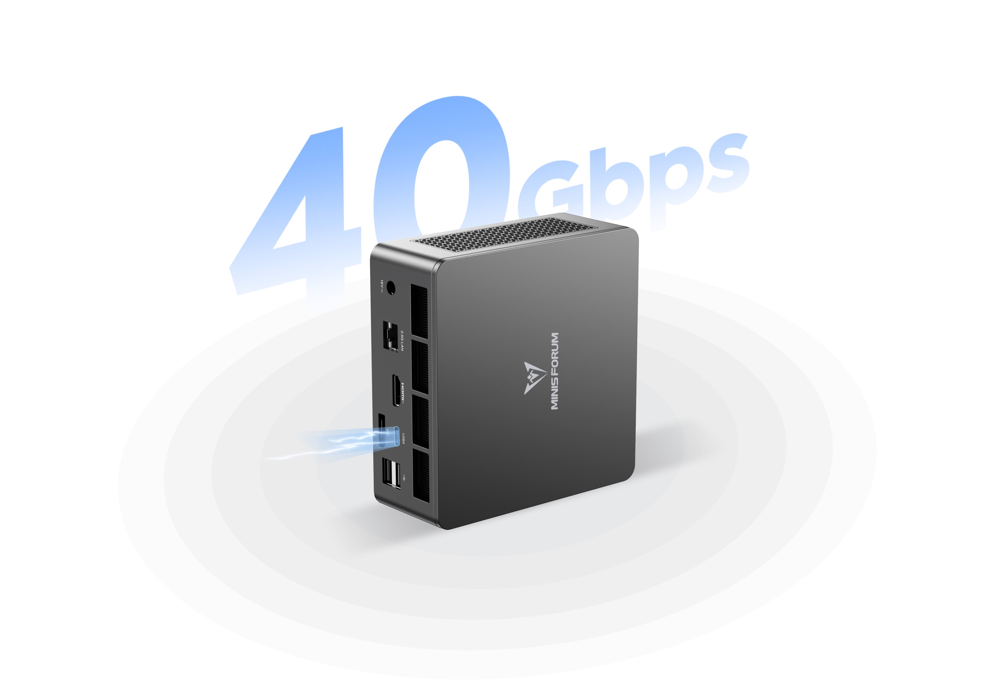 UM690L Slim est équipé d'un port USB4 pleine puissance avec une vitesse de transfert allant jusqu'à 40 Gbit/s, vous permettant de gérer facilement des fichiers volumineux, des projets complexes et des applications à forte demande, améliorant considérablement l'efficacité du travail.