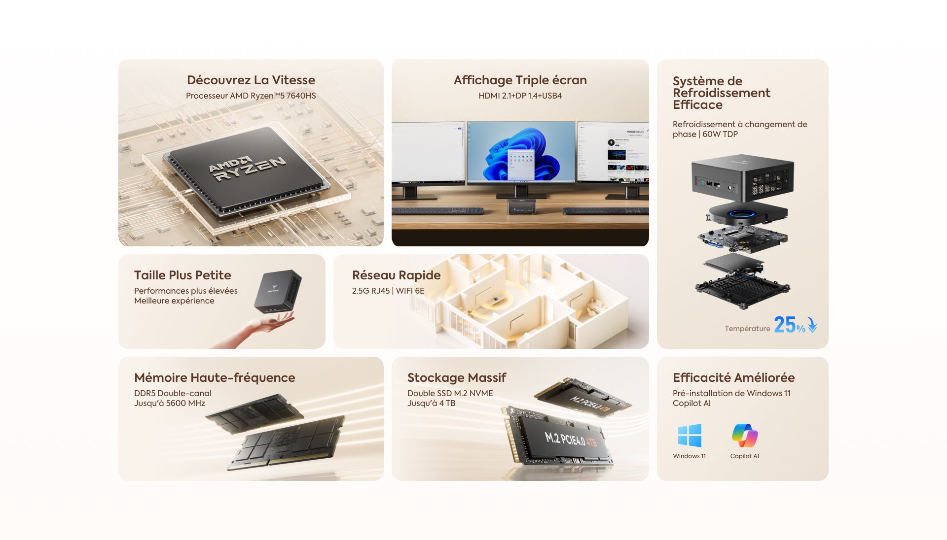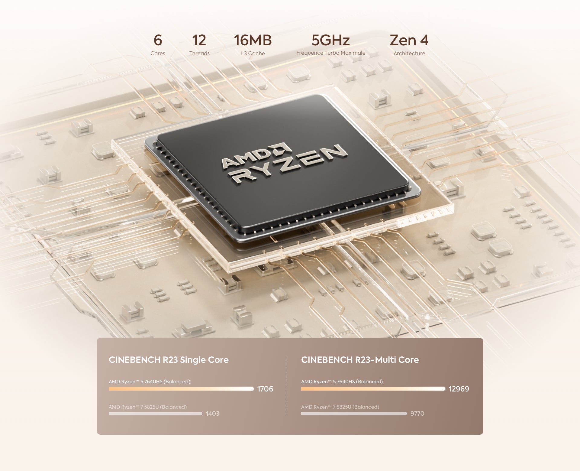 UM760 Slim est équipé de processeurs AMD Ryzen 5 7640HS.