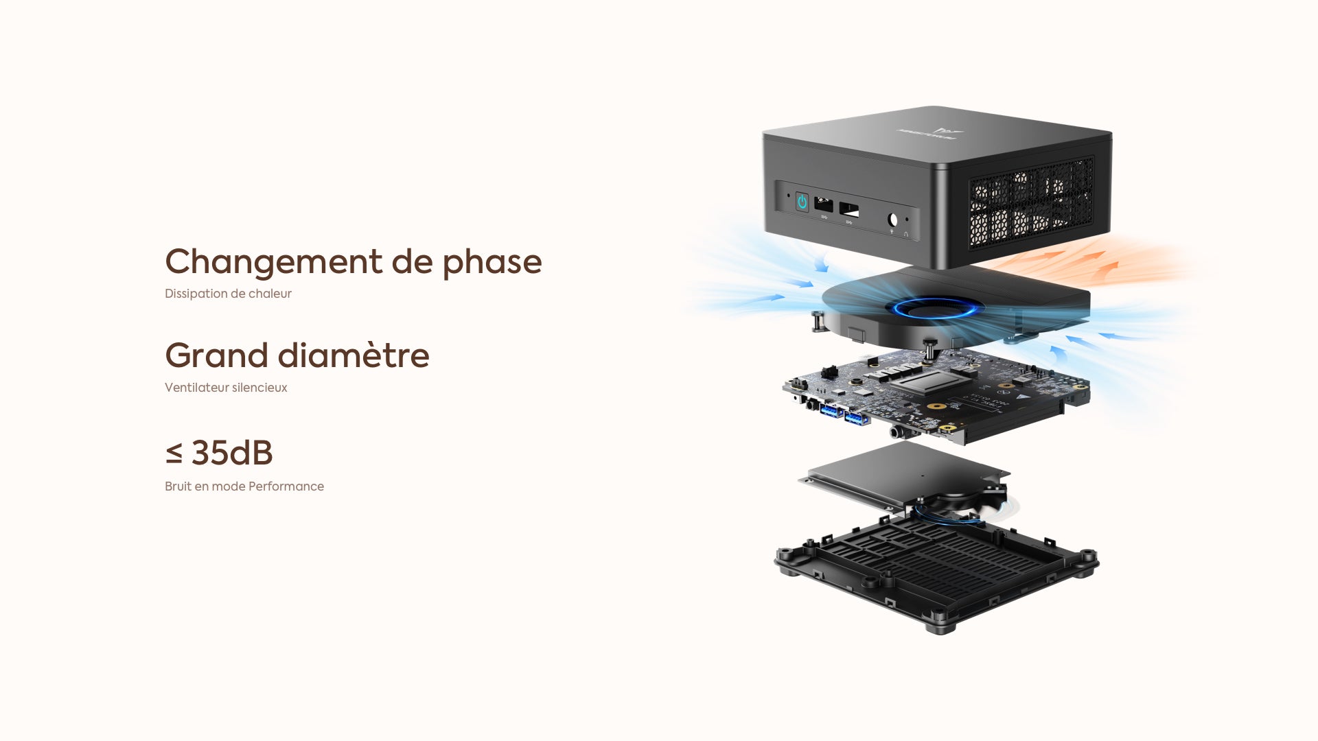 L'UM760 slim combine une conception compacte avec des performances et une fiabilité puissantes, offrant des capacités exceptionnelles en matière de gérabilité, de préparation à l'IA, de détection Wi-Fi, de connectivité sans fil et de personnalisation. Il est parfaitement adapté aux applications professionnelles modernes, à l'informatique de pointe et aux scénarios IoT.
