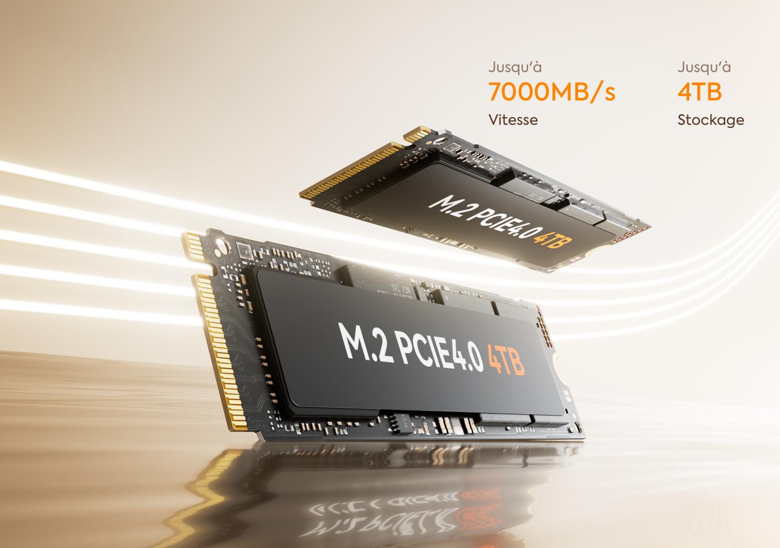 2 × slot SSD M.2 2280 NVME (jusqu'à 4 To) (PCIe4.0 × 4)