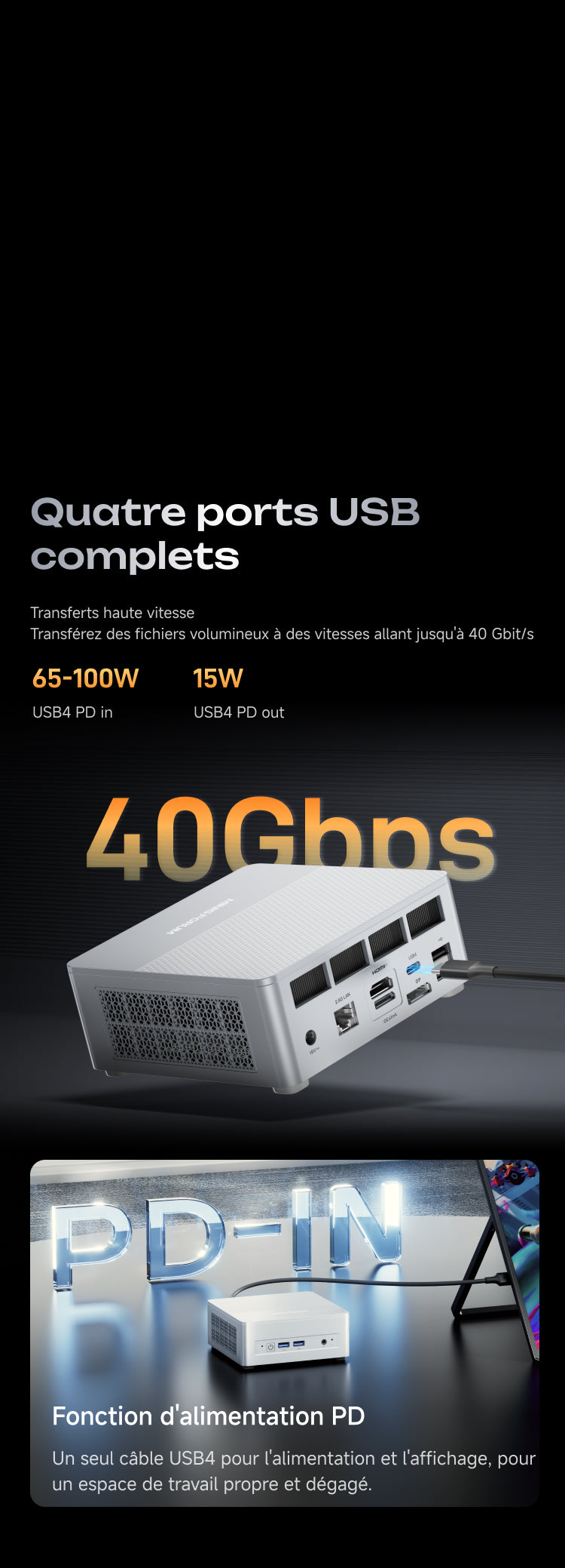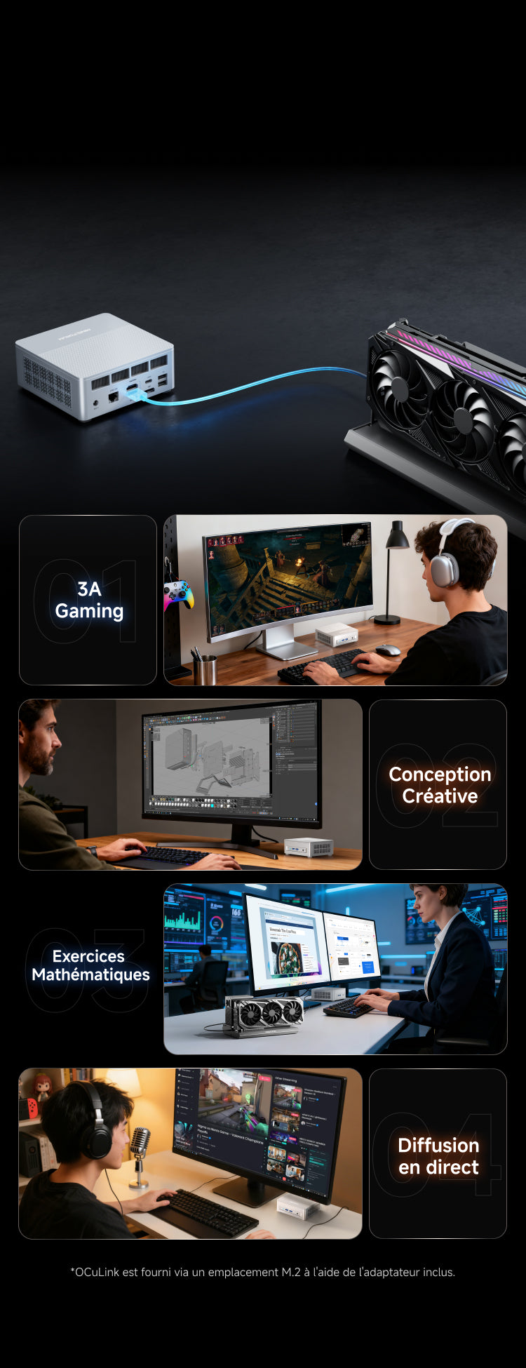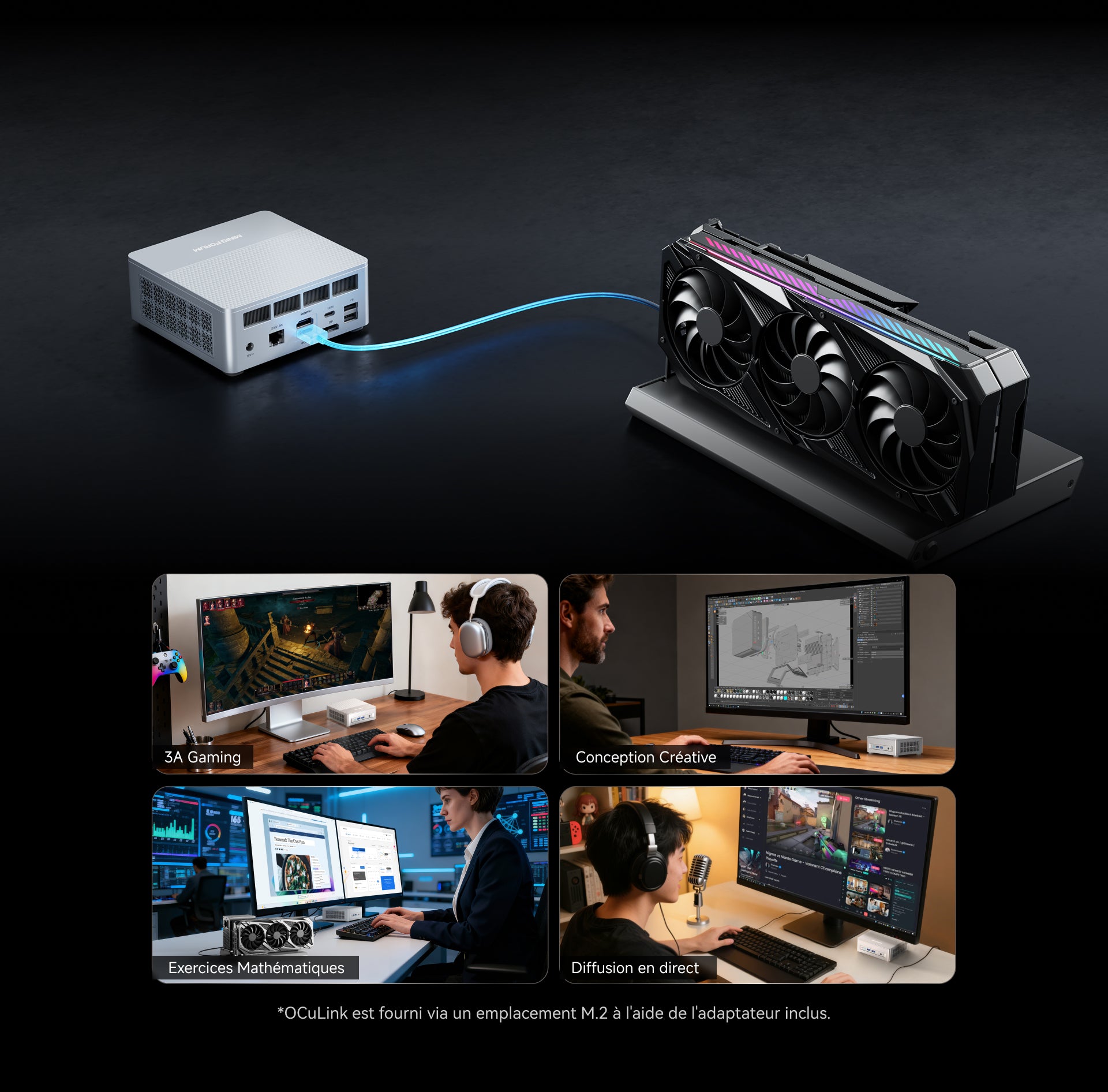 Prend en charge jusqu'à trois écrans pour un multitâche fluide et un divertissement immersif, un seul écran jusqu'à 8K, trois écrans jusqu'à 4K.