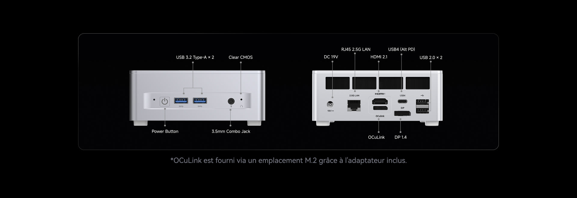 DDR5-5600MHz SO-DIMM (double canal, supporte jusqu'à 128 Go au total)