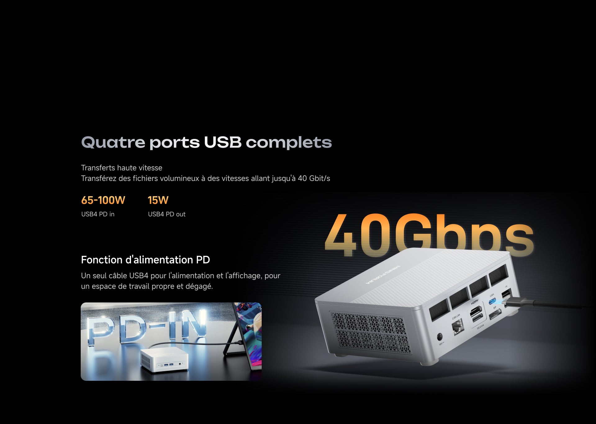 USB4 Type-Cx1 (40Gbps, PD 65-100W input & 15W output)
