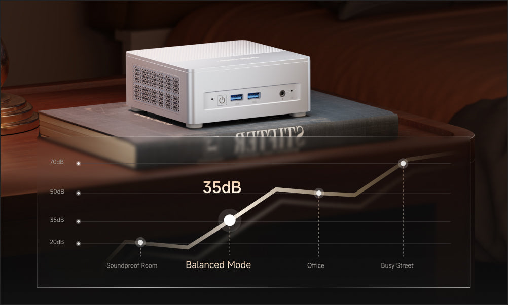 Le niveau sonore reste inférieur à 35 dB en utilisation quotidienne, pratiquement imperceptible pour une concentration optimale.